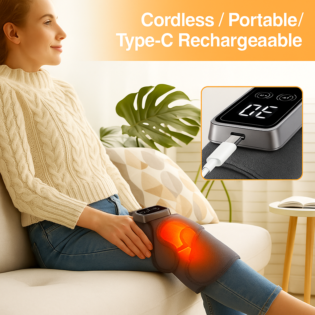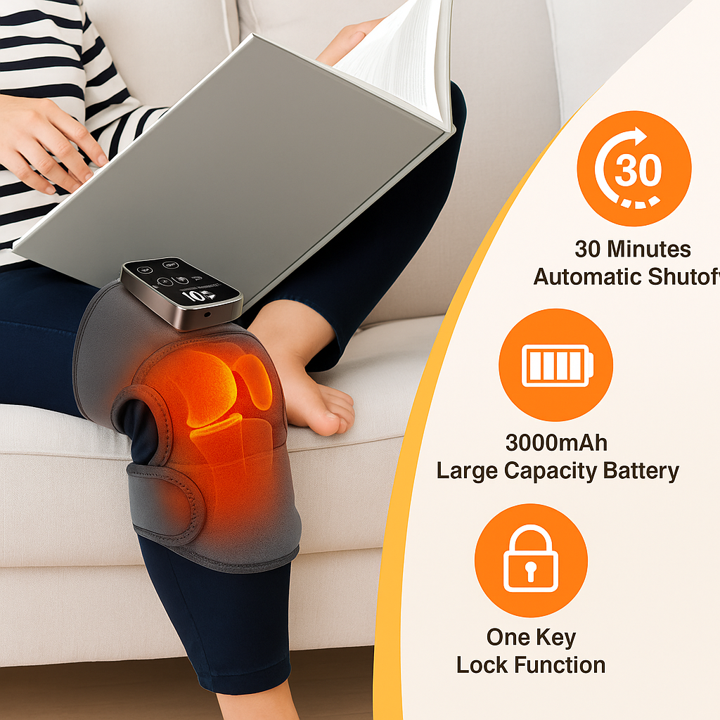 Enjoy the ultimate convenience with our intelligent knee massager. The 30-minute automatic shutoff ensures safety while preventing overuse, and the 3000mAh battery provides long-lasting power for multiple sessions. One key lock function prevents accidental operation, and the cordless, compact design allows therapy at home, office, or on the go. Type-C rechargeable technology makes charging fast and simple. With smart design and thoughtful features, your recovery has never been easier or more comfortable.